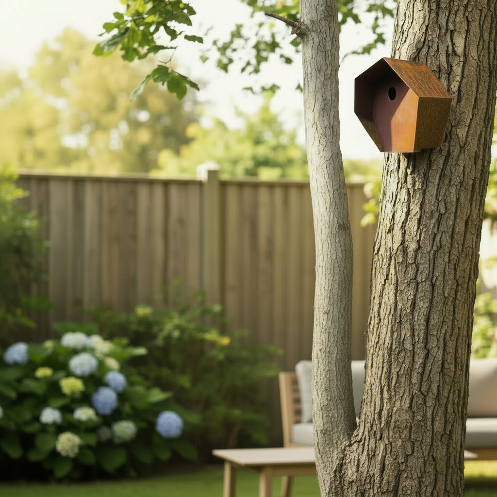 Corten mounted bird house