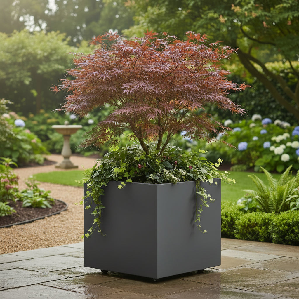 Aluminium square planter w/ wheels